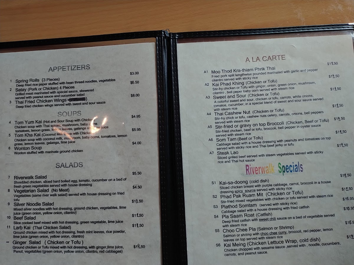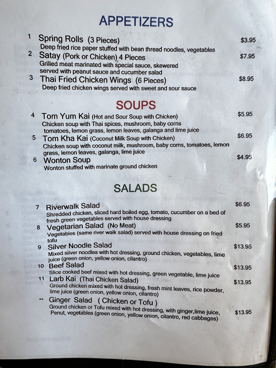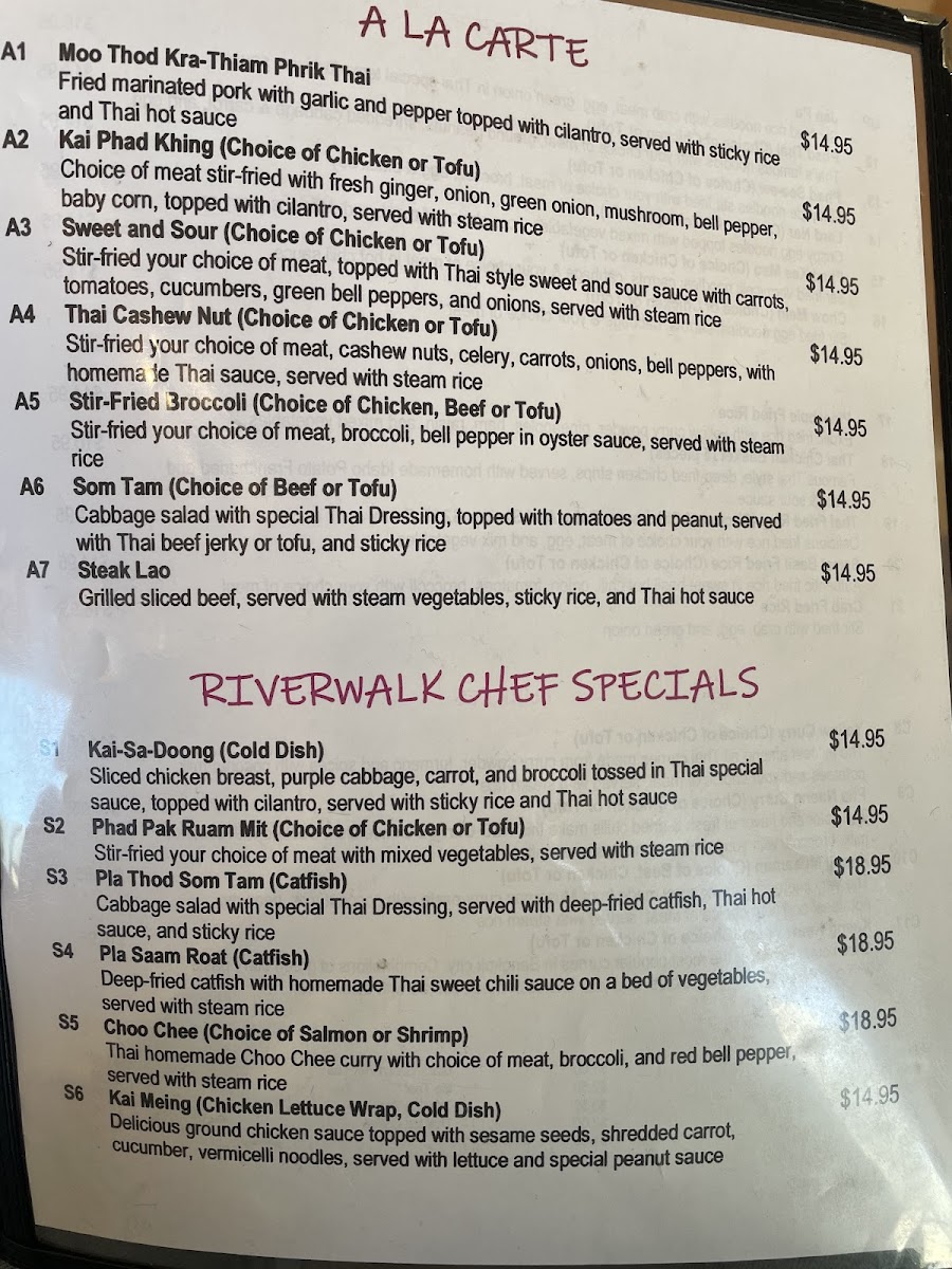 Riverwalk Thai Food Menu